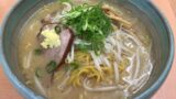 The soup is made from a blend of three types of miso, local pork bones, chicken broth, dried sardines, and skipjack tuna, all brought together with aromatic burnt oil.