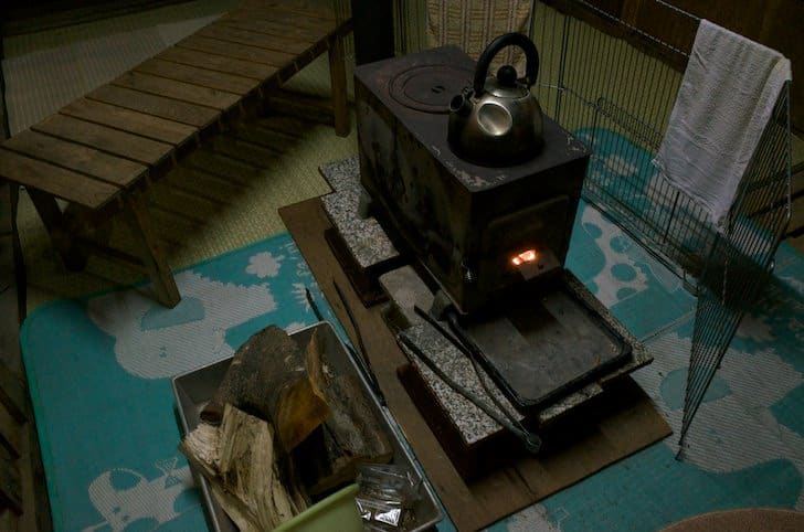Inside the changing room, a wood-burning stove kept the place warm.